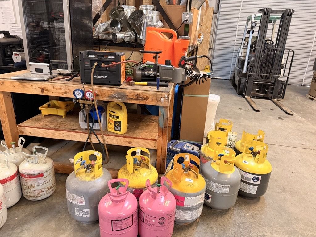 Instead of venting refrigerant, our team uses a recovery machine to safely remove it from the system. From there, the recovered refrigerant is sent to a certified reclaimer, where it can be cleaned, tested, and reclaimed for reuse.
